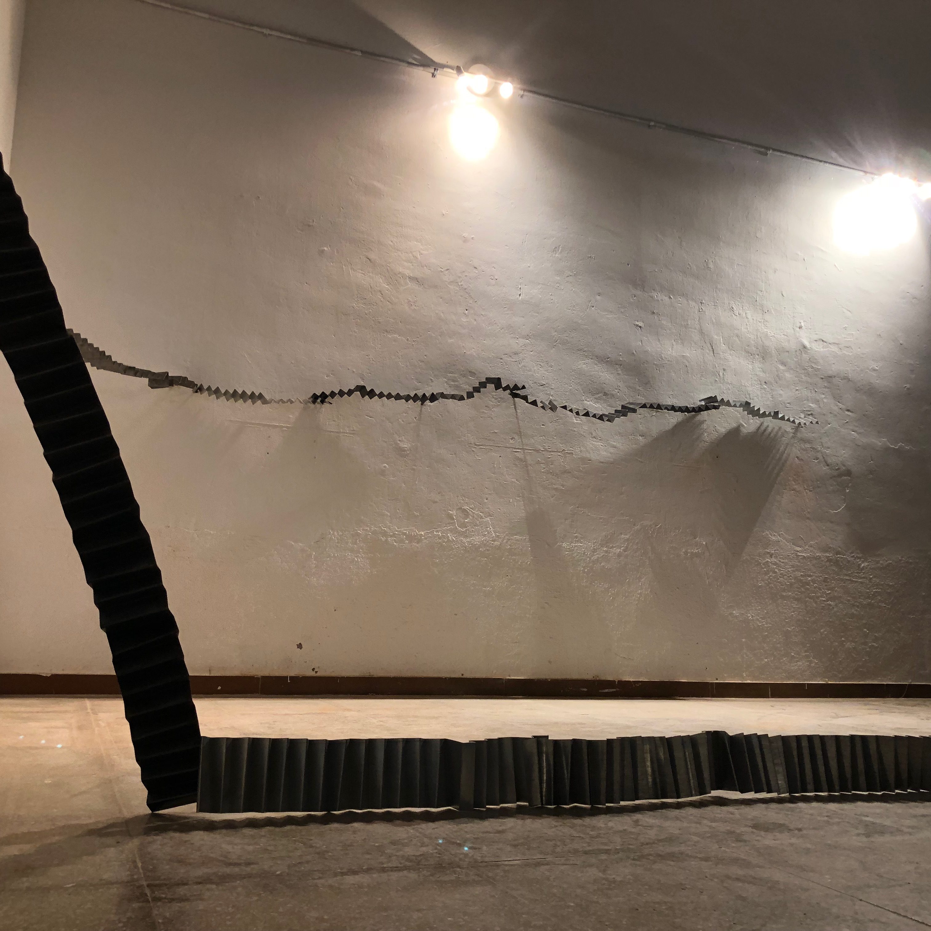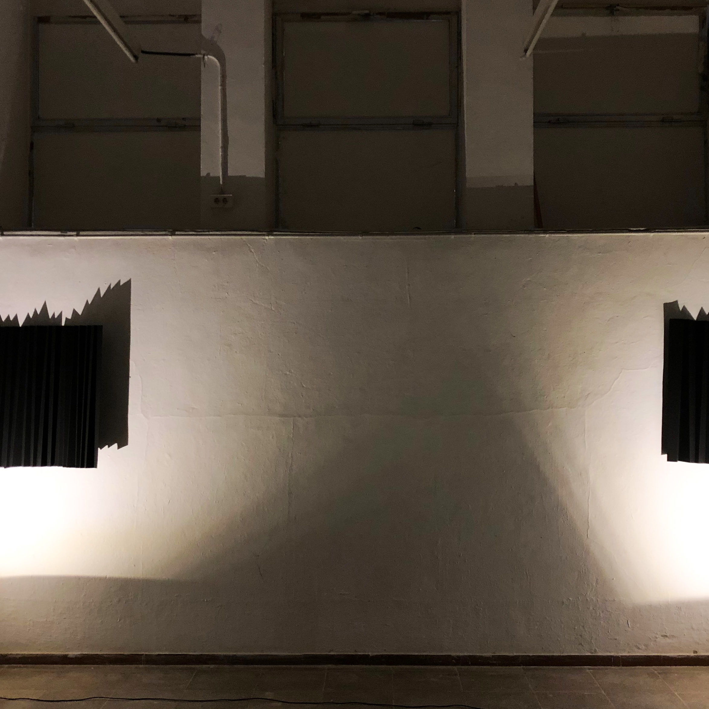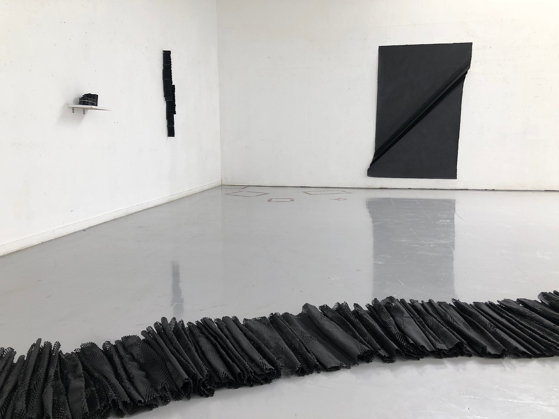 Material and formal limits of painting have been displaced, the concern is focused on shadows, the trace of light and its potencial as a generator of forms. Black reflects and absorbs.