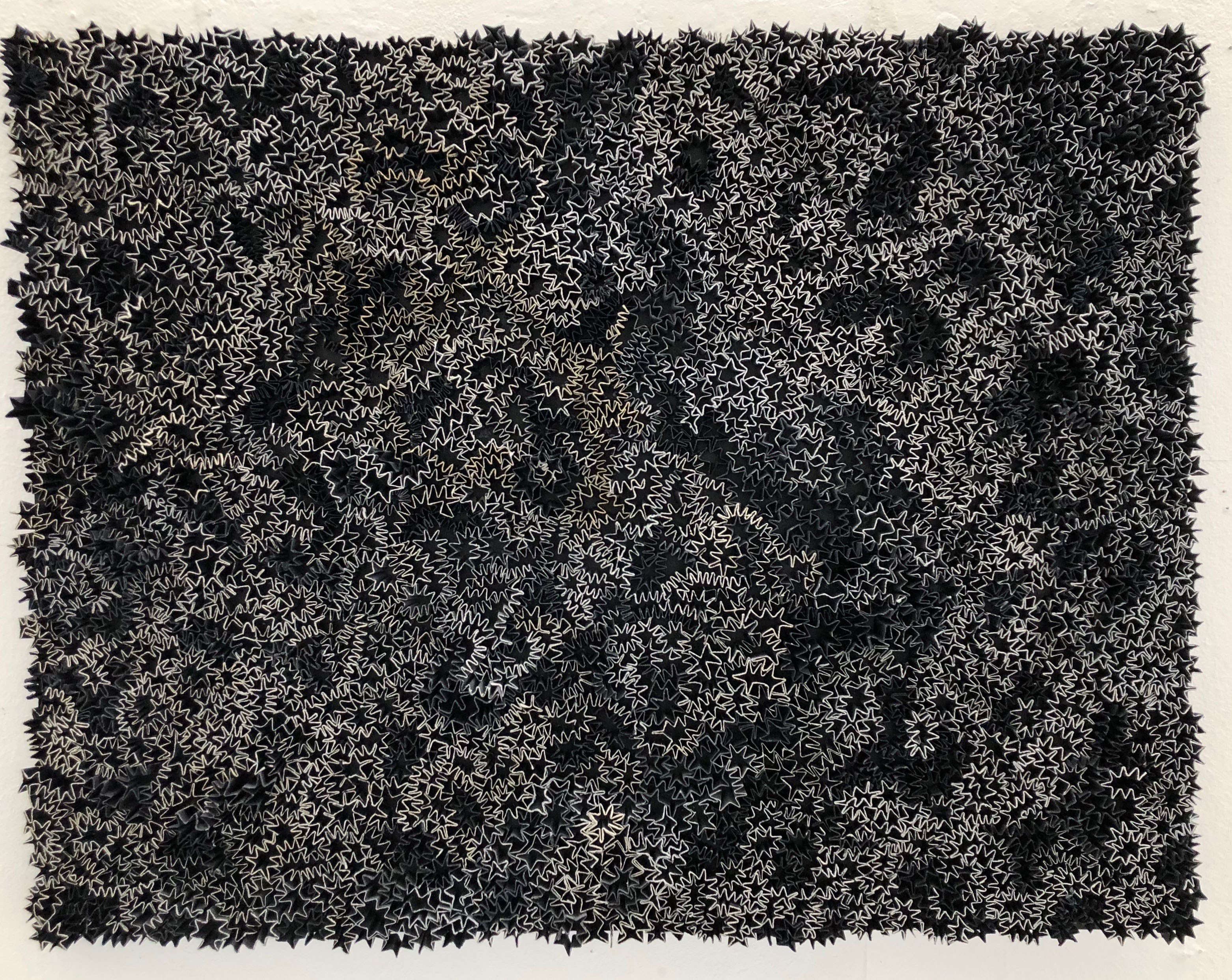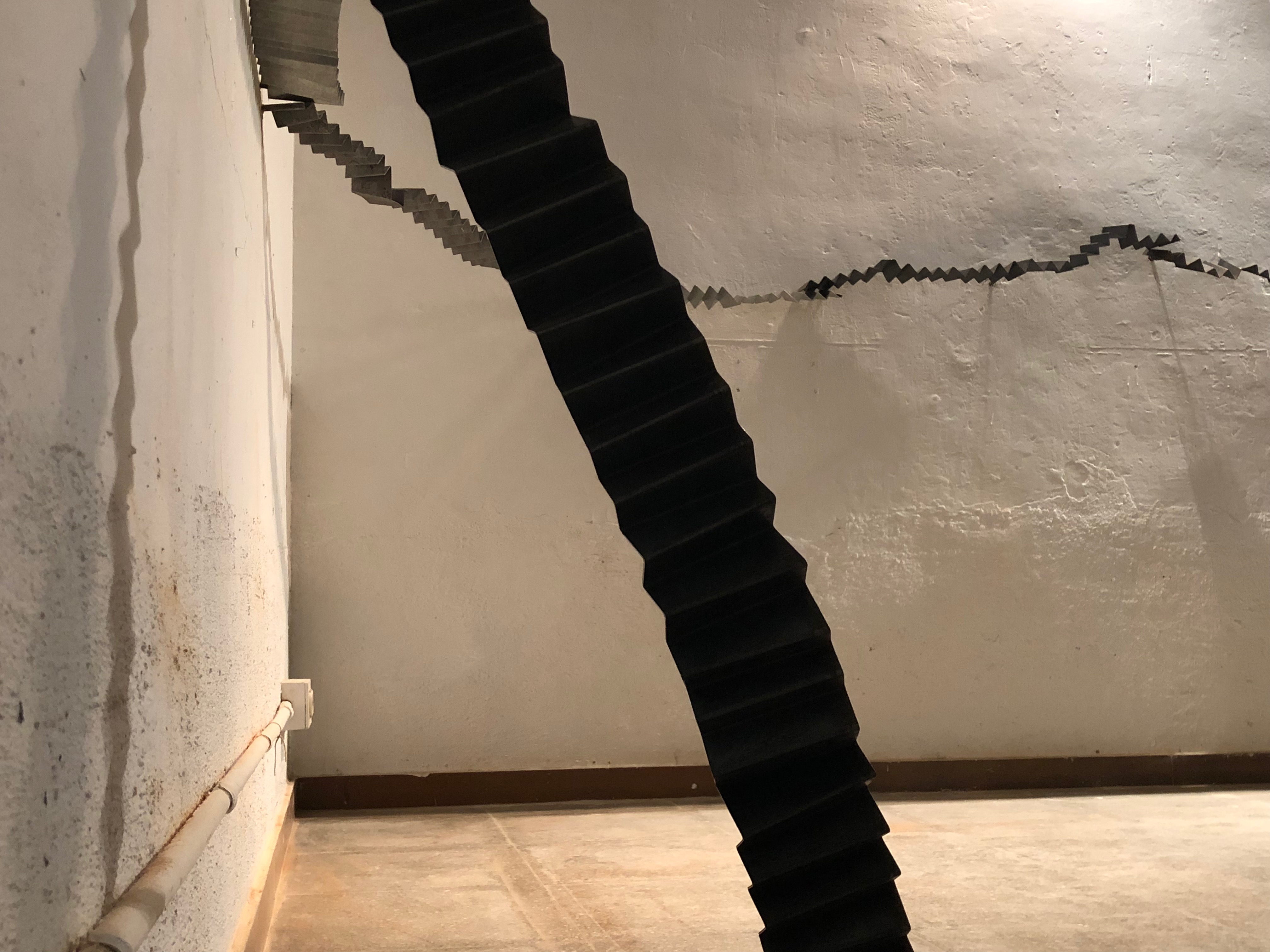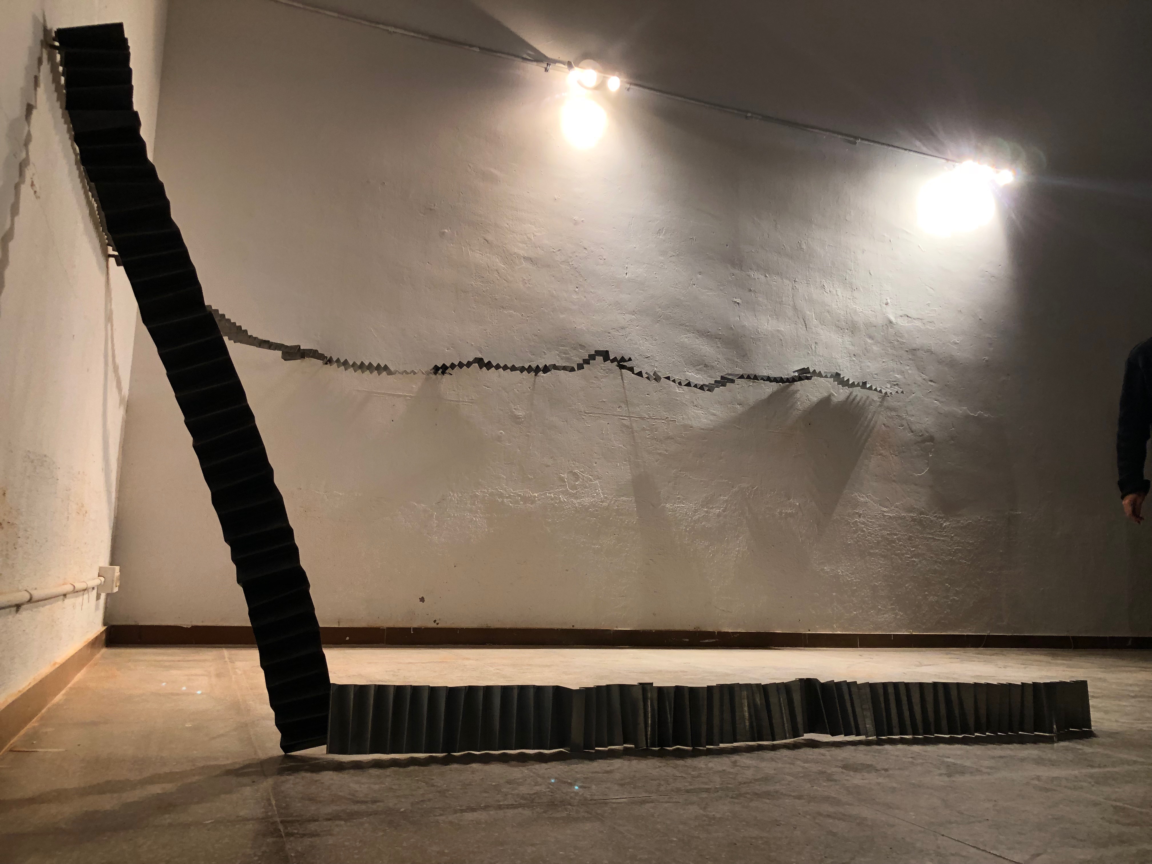 Material and formal limits of painting have been displaced, the concern is focused on shadows, the trace of light and its potencial as a generator of forms. Black reflects and absorbs.