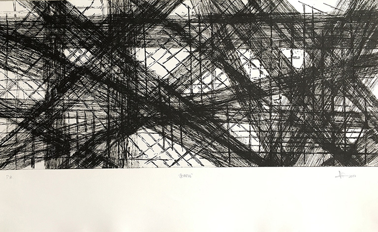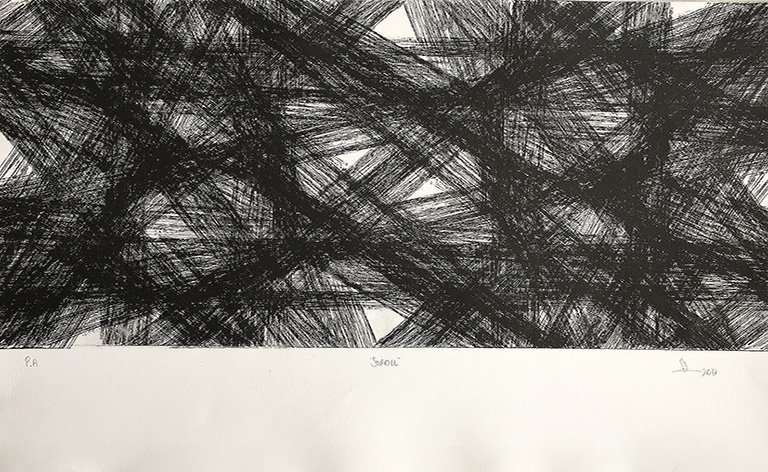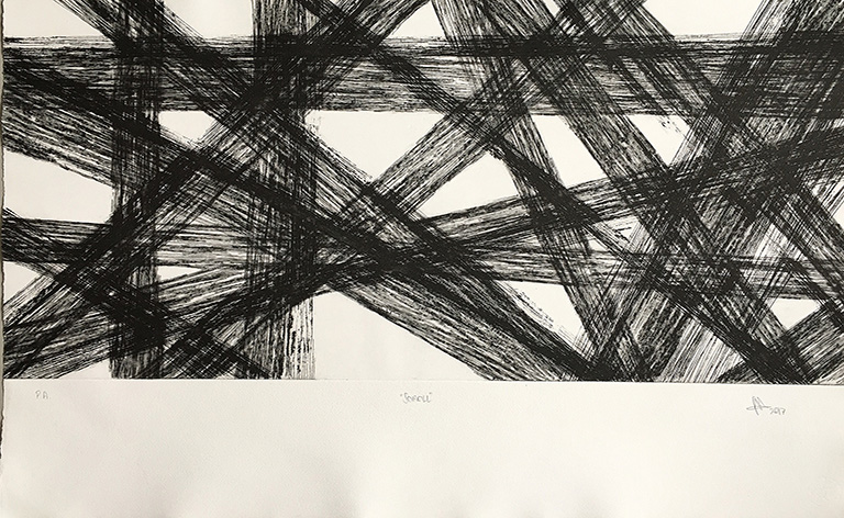 Due to the vibe in the print workshop I have been carried away by the sounds that surrounded me, murmurs, crashes, rock, …….