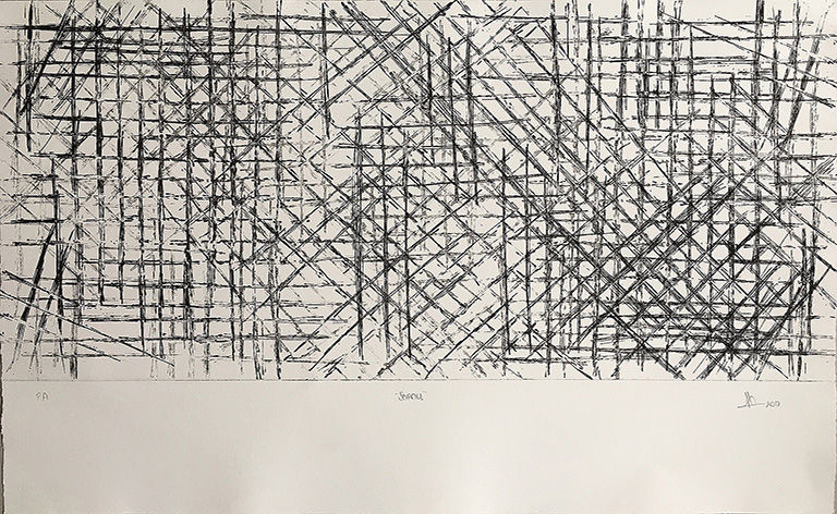 Without abandoning the line nor the monochrome of my pictorial language, I wanted to do something just a bit different, less content than my usual way of doing, based on rhythmic brushstrokes.